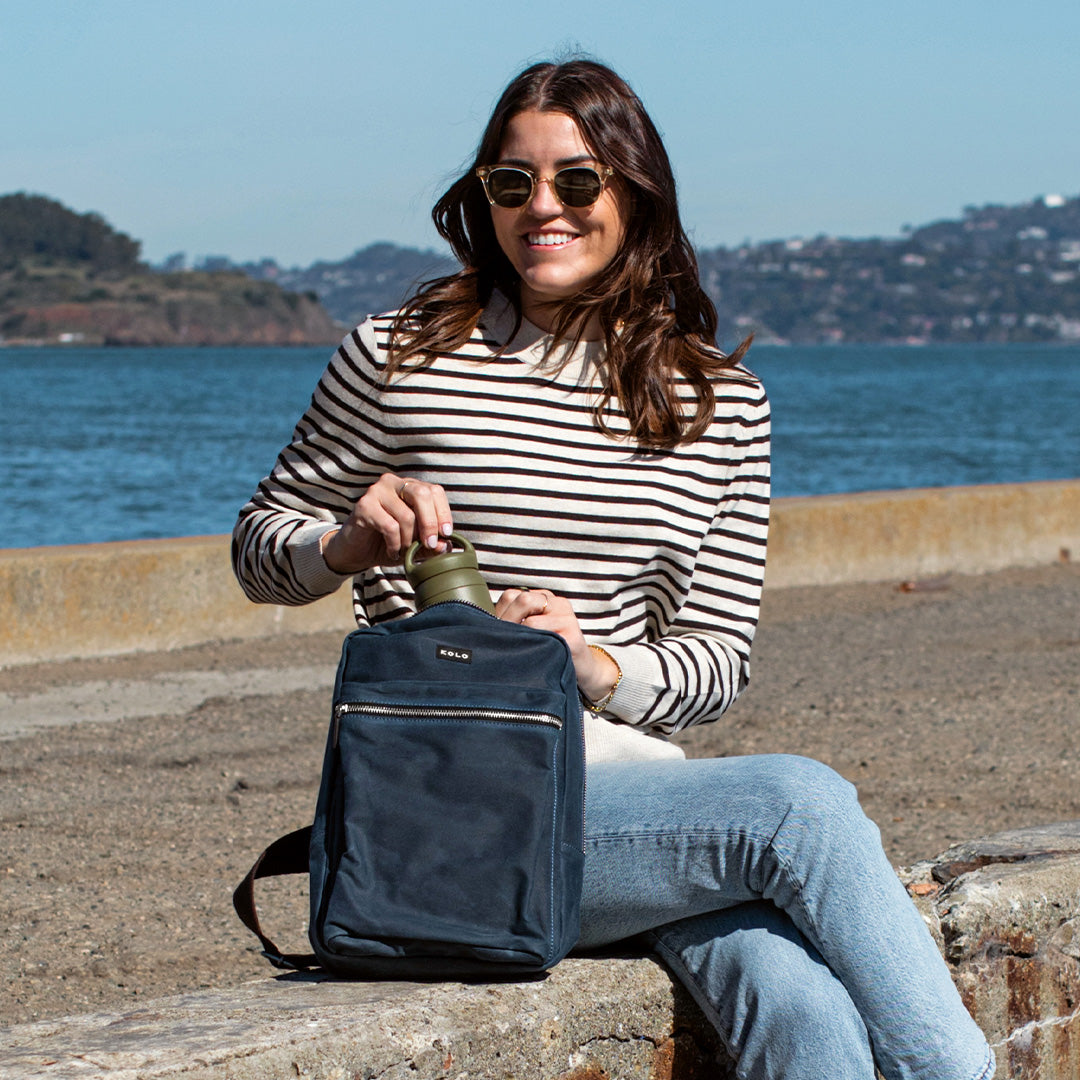 The Derby is our organic cotton sling bag, coated in weather-resistant wax for durability. An adjustable soft cotton cross-body shoulder strap that can be clipped on either side makes it flexible for the wearer. Featuring a main compartment with a sleeve that fits 15" Laptops, and a front zipper pocket ideal for quick access to your things.